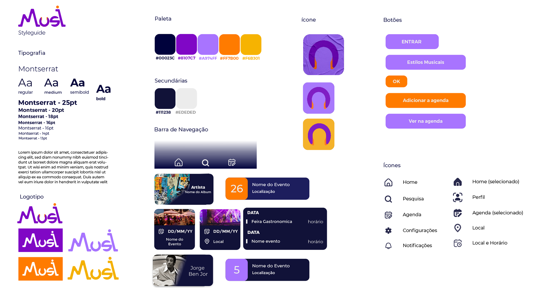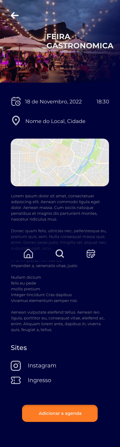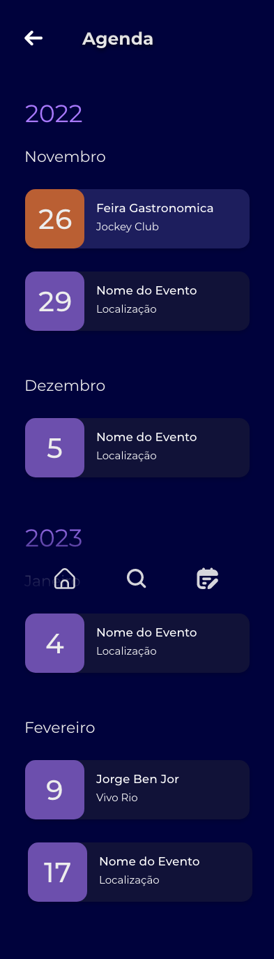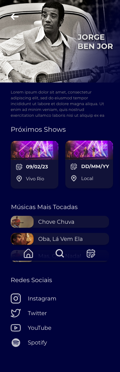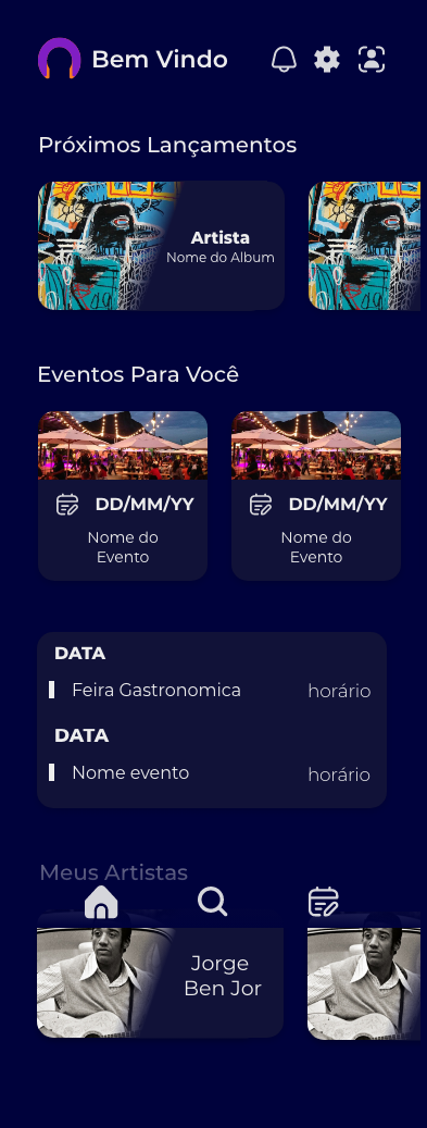 Aplicativo de Eventos e Música, nele fui responsável pela criação da Interatividade e da Telas